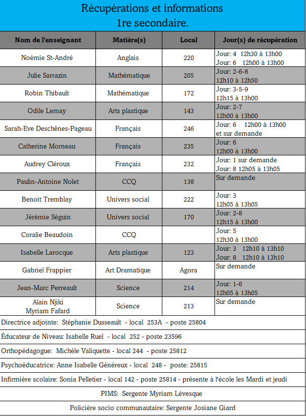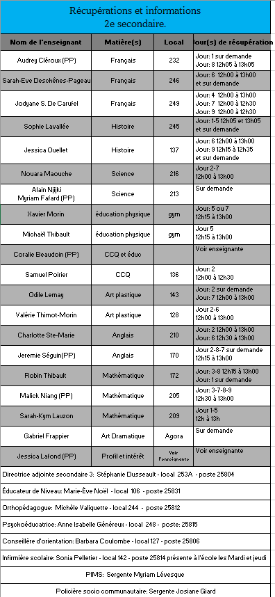 Voici les tableaux des récupérations offertes par les enseignants. Si vous désirez télécharger un ou des tableaux en particulier, les liens sont en bas de cette page.